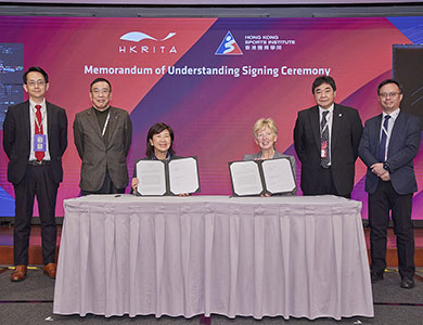 Leahy)签署。李博士指出:「此合作有助强化香港运动员的装备,让他们更容易适应不同运动项目和比赛环境的需要。香港特区政府现正积极推动体育运动的专业化及产业化,研发中心的持续支持对香港运动员在未来国际体育赛事取得好成绩至为关键。」