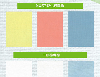 MOF功能化棉織物(上)的染色效果較使用傳統染色方法顯著